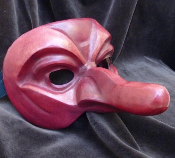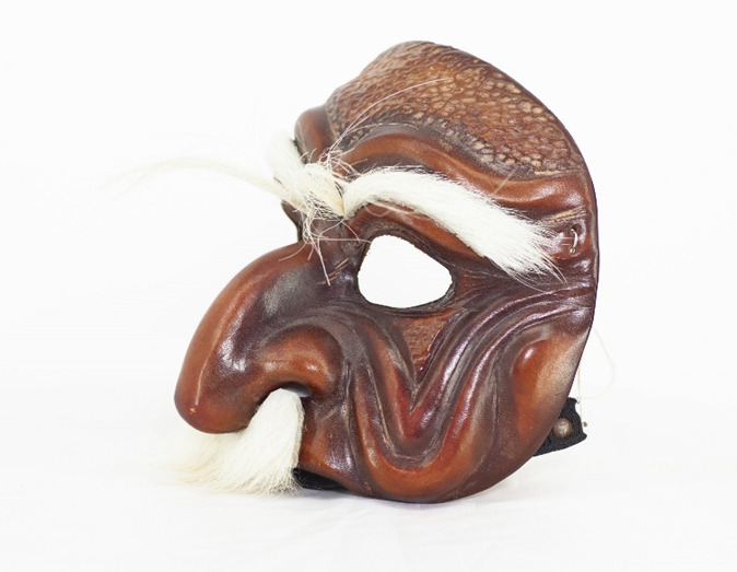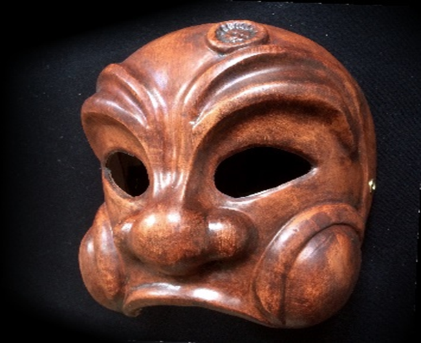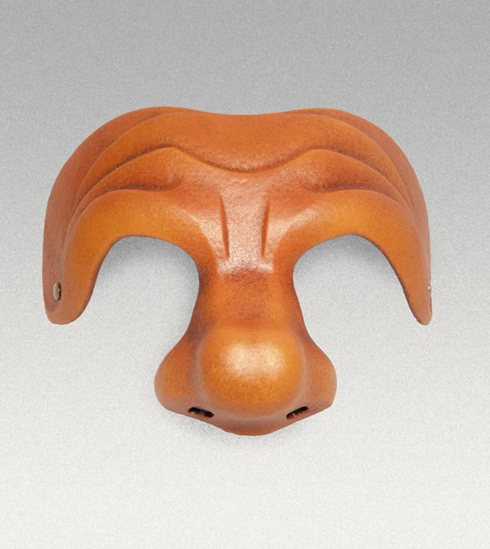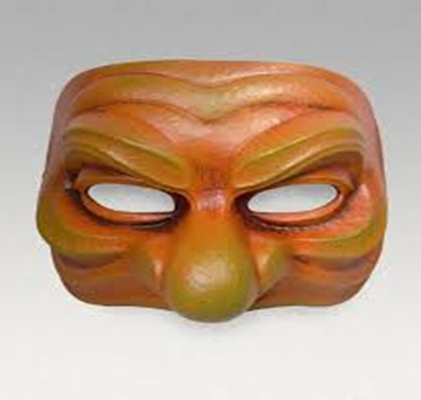 Masque ne couvrant que le front et le nez du personnage, avec un gros nez épaté.