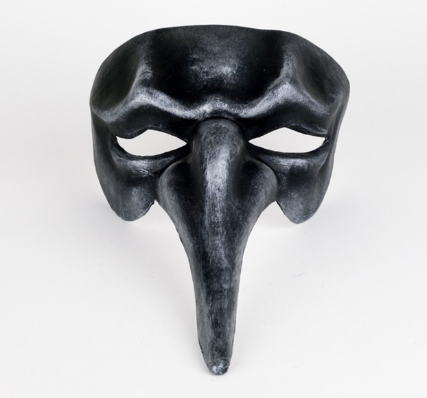 Au départ, un simple demi-masque blanc, puis, un demi-masque caractérisé par :