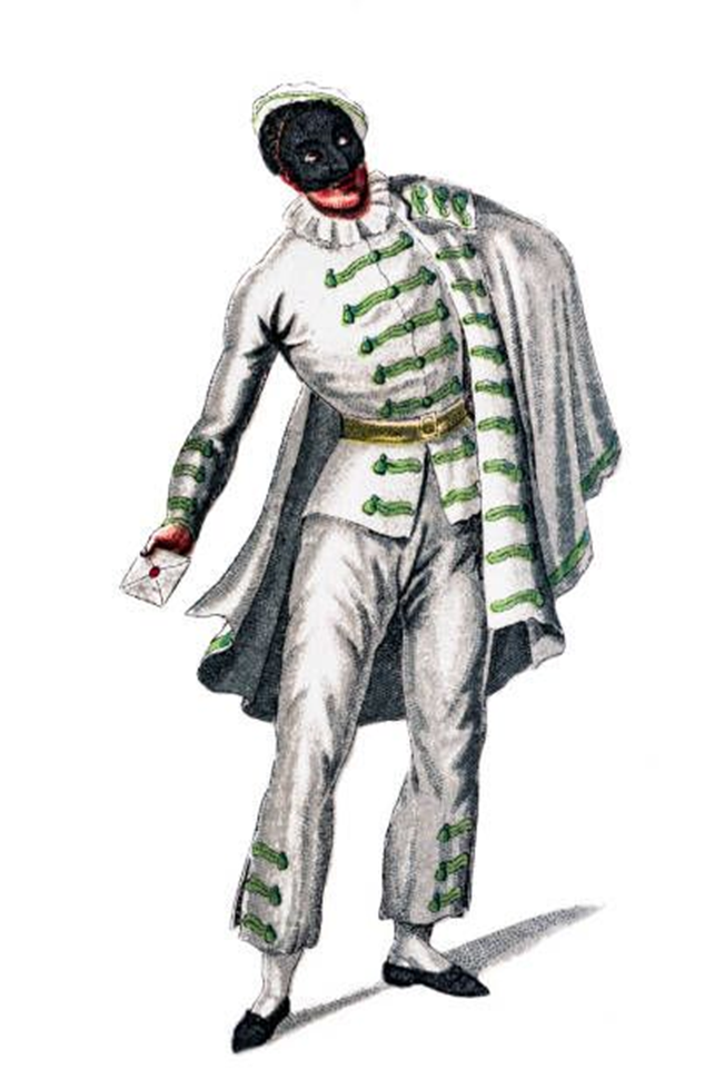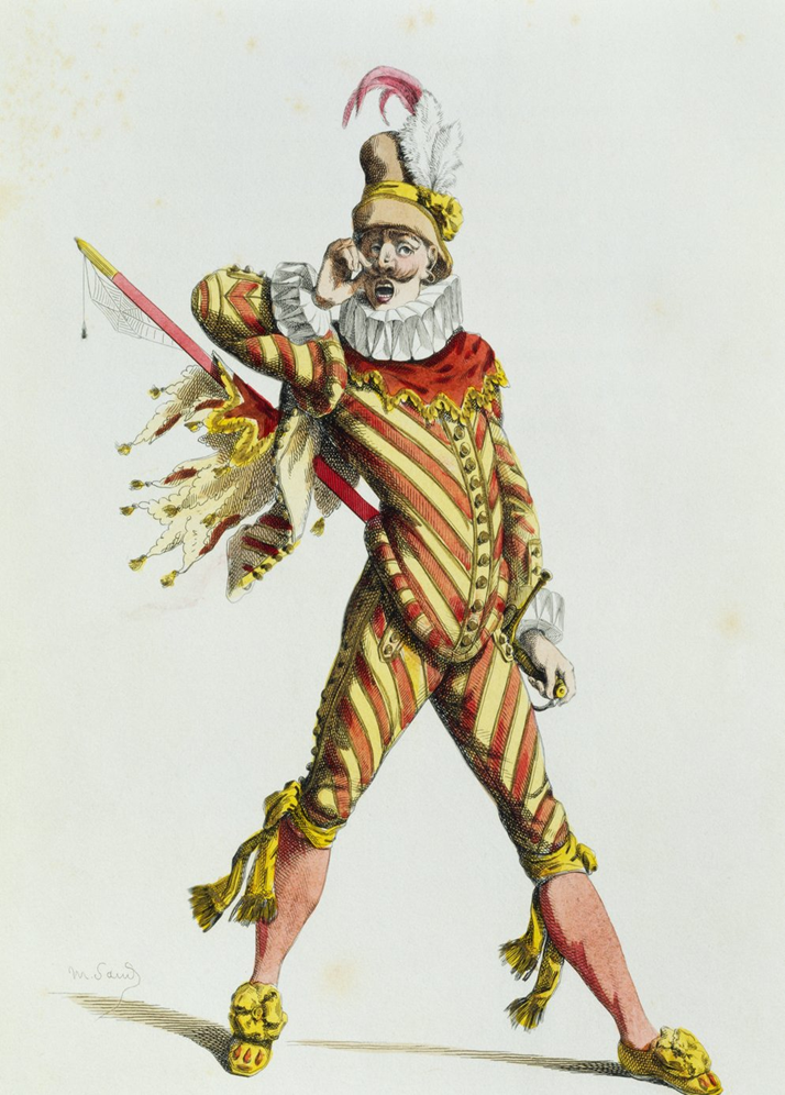 Les images des personnages sont issues des estampes illustrant le livre de Maurice Sand, Masques et bouffons, Paris : A. Lévy fils, 1862 – domaine public